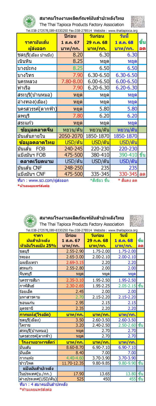 ส่งออกผลิตภัณฑ์มันสำปะหลังส่งออกมันเส้นมันเม็ดเดือนกรกฎาคม 2568 Posted on 8 สิงหาคม 20258 สิงหาคม 2025 by kuakuuo 08 ส.ค.
